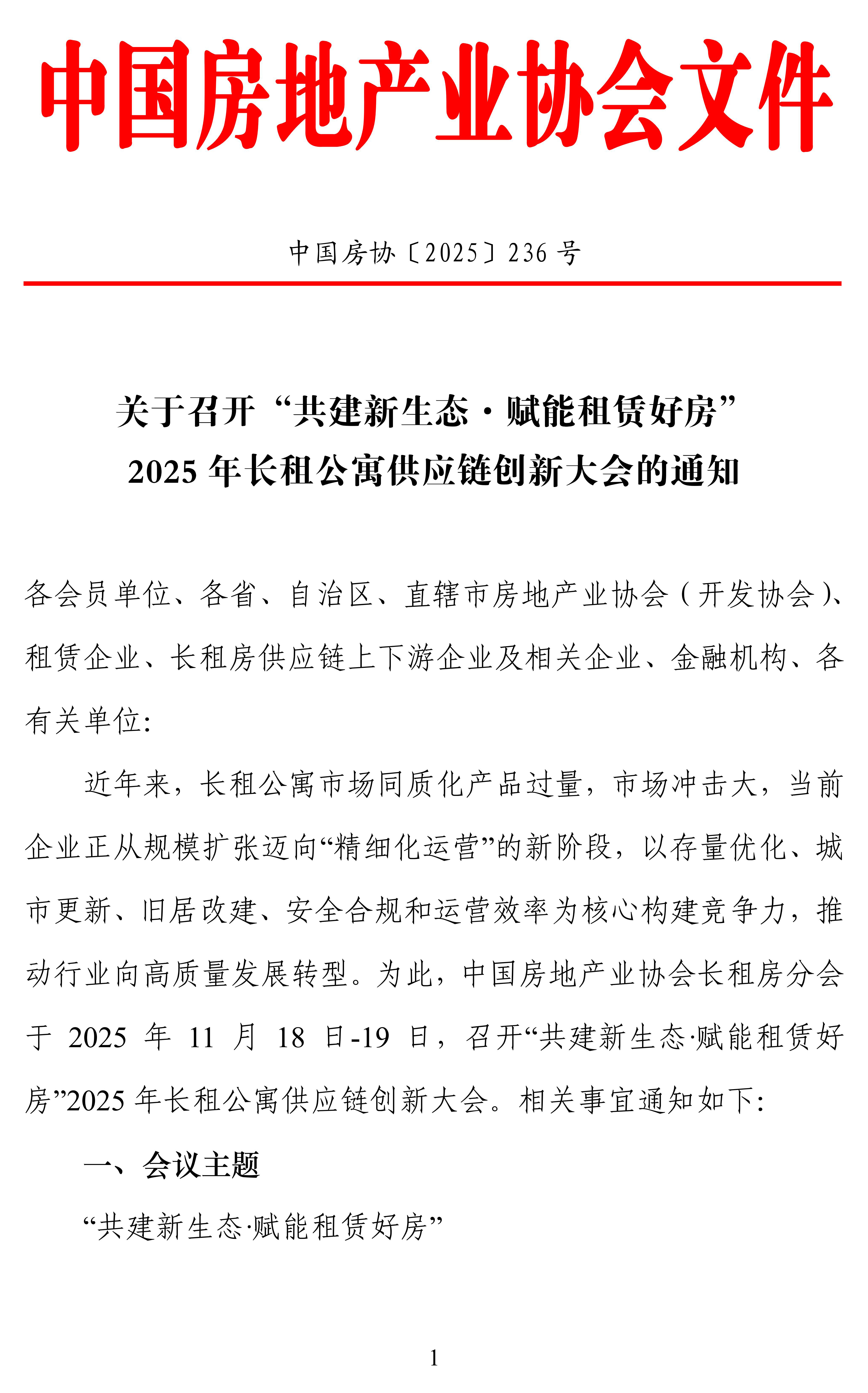 中房协关于召开“共建新生态·赋能租赁好房” 2025年长租公寓供应链创新大会的通知