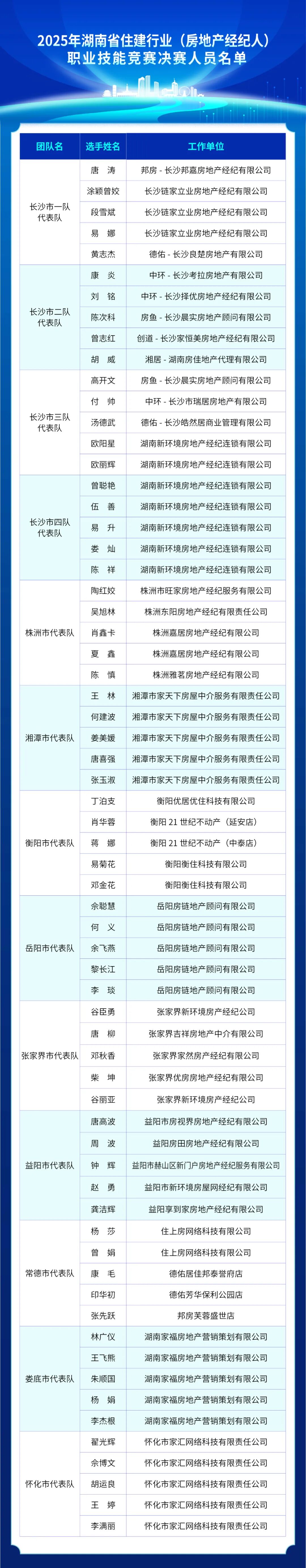 附件:2025年湖南省住建行业(房地产经纪人)职业技能竞赛决赛人员名单